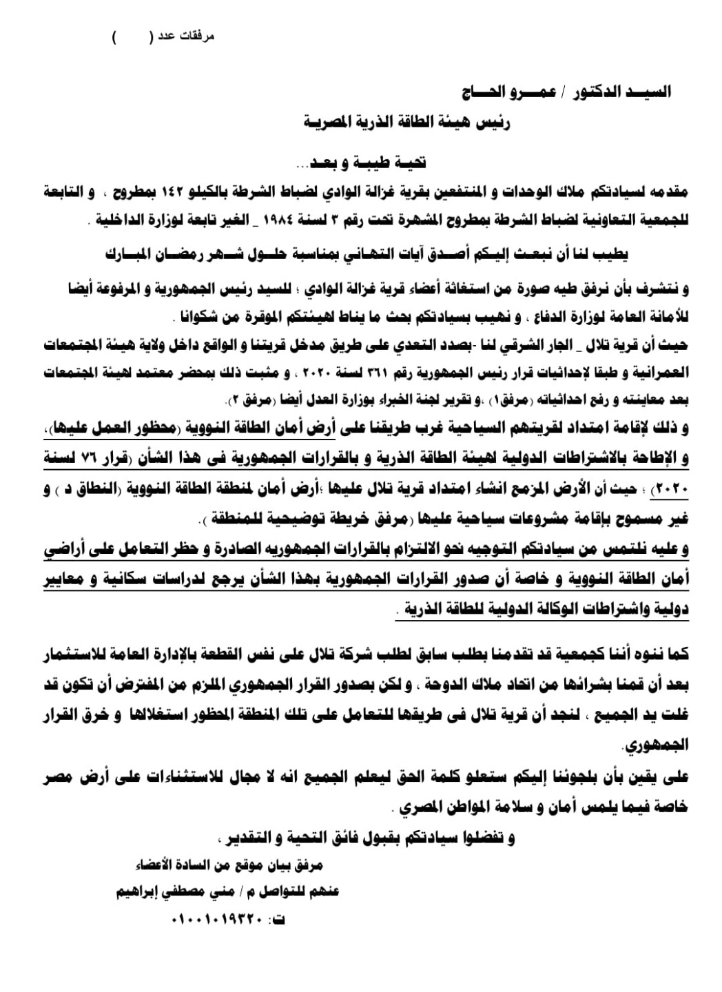 جدير بالذكر أن الطريق المؤدي إلى قرية غزالة هو طريق القرية الوحيد منذ أكثر من 30 عاما، ويقع على يمين الطريق المشروع الحالي لشركة طيبة والمعروف باسم تلال وعلى الجهة اليسرى من الطريق توجد الأرض المزمع إنشاء امتداد لقرية تلال عليها، وهي في حقيقة الأمر تقع داخل نطاق القرار الجمهوري رقم 76 والخاص بأمان الطاقة النووية ومحظور إقامة منشآت سياحية عليها بموجب هذا القرار.